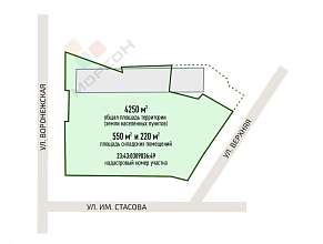 СРОЧНАЯ ПРОДАЖА «ВРЕМЯ СТРОИТЬ» – УЧАСТОК ЗЕМЛИ С ПРОИЗВОДСТВЕННО-СКЛАДСКИМ КОМПЛЕКСОМ В ЛУЧШЕЙ ЛОКАЦИИ КРАСНОДАРА (Рядом Гарантия на обрывной)Идеально подходит для коммерческой застройки - логистический, складской центр. Общая площадь территории – 4820 м² (Земли населенных пунктов)Площадь складских помещений – 550 м² и 220 м²Развитая инфраструктура и удобная транспортная доступность обеспечивают постоянный поток клиентов и высокий автомобильный трафик. Рядом проходит автомобильная магистраль, что делает подъезд к комплексу максимально комфортным.Кадастровый номер участка: 23:43:0309036:426 (на снимке старый кадастровый до уменьшения размера участка)---В составе комплекса:- Два производственно-складских помещения с чистовой отделкой- Офисное здание- Помещение для охраны- Ухоженная и оборудованная территория- Два въезда (один с улицы и дополнительный на территории спокойно помещается 5 фур)- Пожарный выезд- Парковка на улице- Круглосуточная охрана и видеонаблюдениеОбъект продаётся согласно графику продаж:19.05 140 000 000 р26.05 139 900 000 р2.06 139 700 000 р9.06 139 500 000 р16.06 139 300 000 р23.06 138 000 000 рВозможно вы искали: коммерция, коммерческая земля, земельный участок, склад, складской комплекс, логистика, логистический центр, жилой комплекс, земля под застройкуНомер объекта: #5/1629281/3069