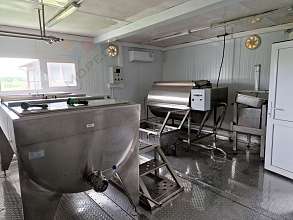 Мобильный цех по переработке молока, который можно разобрать и перевезти! Выработка 4 т в сутки, 2 т в смену. Выработка творога, молока, масла, йогурта, кисломолочной продукции. Комплектация: -Насос молочный 3.5 м3/ч -Узел приемный: фильтрация (грубая и тонкая), учет пластинчатый охладитель -МОУ-2.0, молоко-охладительная установка 2000 л -Пастеризатор 1000л/ч - ТМУ - 300, ванна длительной пастеризации с "шахматной" рубашкой противотока для нагрева/охлаждения, 300л -ТМУ - 500, ванна длительной пастеризации с "шахматной" рубашкой противотока для нагрева/охлаждения, 500л - ВТ - 1000, ванна длительной пастеризации с "шахматной" рубашкой противотока для нагрева/охлаждения, 1000л - Автомат фасовки в пакеты/стаканы/ - Полуавтомат фасовки в ПЭТ - бутылку, до 800 доз/ч - Этикеровщик с маркиратором, до 1000 шт/ч -Шкаф управления -Пресс - тележка, ПТТ-100 -Холодильная камера с агрегатом -Маслоизготовитель, 100 л -Гомогенизатор -и т.д.Номер объекта: #5/1630594/3069