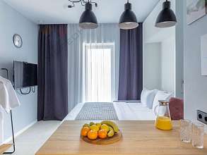 Номер объекта: 1694703. Семейный гостиничный комплекс — жемчужина отдыха в Анапе, расположен на 12 гектарах охраняемой собственной территории на берегу Черного моря. На территории парковая зона с лиственными и хвойными посадками. Прекрасное место для жизни и отдыха с современной инфраструктурой. Все номера полностью меблированы, оснащены кондиционером, сдаются с дизайнерской отделкой и теплыми полами. Каждый номер с кухней, корпусной и мягкой мебелью, вы приобретаете в собственность для отдыха, либо передать в управление отелю и получать прибыль. Круглогодичное проживание, комплекс находится на второй линии Пионерского проспекта, в 500 м (5 мин. пешком) находится свой песчаный благоустроенный пляж с кварцевым мелкозернистым песком, открытый и закрытый бассейн, концепция двор-парк позволяет насладиться прогулкой, не уходя далеко от комплекса Развитая инфраструктура, море в шаговой доступности, собственный пляж, своя парковая зона с авторской архитектурой. Расположение и транспортная доступность: 13.5 от аэропорта Анапа (25 мин. на транспорте), 3.5 км от ж/д вокзала (6 мин. на транспорте), 5.5 км от центра (10 мин на транспорте). На территории комплекса находятся: Большой открытый бассейн; Крытый бассейн; Детский бассейн с горками; Сухой фонтан; Зона отдыха с шезлонгами; Зона барбекю; Беседки; Летнее кафе, ресторан; Амфитеатр, на площадке которого будут проводиться вечера и организован просмотр фильмов; Огромная спортивная зона для взрослых и детей с зонами для игр в баскетбол, волейбол, футбол, настольный теннис; Воркаут; Детские площадки для детей разного возраста с горками, качелями, каруселями, канатной дорогой, фонтанами; Мини зоопарк, Скейт парк; Японский сад; Фитнес, спа зоны, хамам; Тренажерный зал.