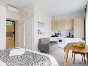Номер объекта: 1694716. Семейный гостиничный комплекс — жемчужина отдыха в Анапе, расположен на 12 гектарах охраняемой собственной территории на берегу Черного моря. На территории парковая зона с лиственными и хвойными посадками. Прекрасное место для жизни и отдыха с современной инфраструктурой. Все номера полностью меблированы, оснащены кондиционером, сдаются с дизайнерской отделкой и теплыми полами. Каждый номер с кухней, корпусной и мягкой мебелью, вы приобретаете в собственность для отдыха, либо передать в управление отелю и получать прибыль. Круглогодичное проживание, комплекс находится на второй линии Пионерского проспекта, в 500 м (5 мин. пешком) находится свой песчаный благоустроенный пляж с кварцевым мелкозернистым песком, открытый и закрытый бассейн, концепция двор-парк позволяет насладиться прогулкой, не уходя далеко от комплекса Развитая инфраструктура, море в шаговой доступности, собственный пляж, своя парковая зона с авторской архитектурой. Расположение и транспортная доступность: 13.5 от аэропорта Анапа (25 мин. на транспорте), 3.5 км от ж/д вокзала (6 мин. на транспорте), 5.5 км от центра (10 мин на транспорте). На территории комплекса находятся: Большой открытый бассейн; Крытый бассейн; Детский бассейн с горками; Сухой фонтан; Зона отдыха с шезлонгами; Зона барбекю; Беседки; Летнее кафе, ресторан; Амфитеатр, на площадке которого будут проводиться вечера и организован просмотр фильмов; Огромная спортивная зона для взрослых и детей с зонами для игр в баскетбол, волейбол, футбол, настольный теннис; Воркаут; Детские площадки для детей разного возраста с горками, качелями, каруселями, канатной дорогой, фонтанами; Мини зоопарк, Скейт парк; Японский сад; Фитнес, спа зоны, хамам; Тренажерный зал.