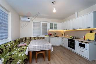 Номер объекта: 1648795. Вашему вниманию уютный новый 2-х этажный дом площадью 137 кв.м. на огромном участке 15 соток в станице Елизаветинская!!! Эксплуатировался всего 3 года. Дом находится в СНТ «Фруктовый», а это значит, что Вам не придется ехать по пыльным, грязным дорогам к своему дому, так как СНТ находится в непосредственной близости к станице и асфальт идет, практически, к дому. Рядом остановка общественного транспорта (регулярно ходят автобусы и маршрутные такси), продуктовые магазины, недалеко школа, детский сад, МФЦ и многое другое, что необходимо для комфортной жизни! Дом был построен по собственному проекту лично для себя (частные застройщики очень экономят на материалах и технологиях). Летом в нем прохладно, зимой тепло.Крыша из качественной металлочерепицы, хорошее утепление стен и перекрытия. Дом частично мебелирован, на кухне встроенная мебель и бытовая техника - все останется новому хозяину. На первом этаже теплый пол, сплит системы, заправки газгольдера хватает на год (зимы у нас теплые), а центральный газ будет в 2026 году (труба уже находится недалеко). Электричество — 10 кВт. Вода центральная из собственной артезианской скважины, расположенной в СНТ. Поэтому стоимость воды символическая. Откатные ворота с электроприводом, забетонированная въездная группа под автомобиль. Тенистая терраса с зоной барбекю. Фруктовый сад с плодоносящими деревьями: абрикосы, яблони, груша, вишни, черешни… Капитальная хозяйственная постройка размером 4 на 7 метров, половина из которой оборудована под курятник (ни разу не использовался), вторая половина как капитальная кладовая. Строение можно переоборудовать под баню и любые другие нужды. Важным преимуществом является площадь участка, а это целых 15 соток!!! Это большая редкость для этой локации. Фасад 30 метров! У Вас появится возможность:- Размежевать участок на два и продать половину, либо построить дом на продажу (земля очень востребована)- Построить второй полноценный дом для своих близких- Построить бассейн, сауну, беседку, зону отдыха и все, что душа пожелает...- Заняться сельским хозяйством (фруктовые деревья, клубника, малина и т. д. и т.п.…). Почва очень плодородная.До реки Кубань 7 минут пешком! Рыбалка, отдых — все рядом! Звоните, записывайтесь на просмотр. Рассмотрим любые Ваши предложения по цене!