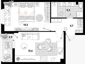 Продается большая однокомнатная квартира в сданном доме в ЖК Самолет - первая очередь. Отличная планировка с большой кухней-гостиной 15,6 кв.м, комната 14,2 кв.м., большой санузел 5,3 кв.м. Окна выходят во двор на стоянку автомобилей и стилобат с детской площадкой и беседками.