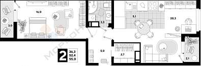 Продается 2-комнатная квартира свободной планировки.