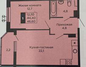 Продаётся однокомнатная квартира вторичном рынке площадью 44.00 кв.м.