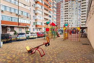 Чистый уютный двор, детская и спортивная площадка, места для отдыха, большое количество зелени и кустарников. Наличие парковочных мест.