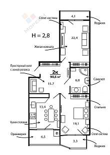 Площадь указана в соответствии с тех. паспортом с учетом 3-х видовых балконов.