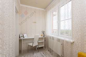 Квартира расположена на 12 этаже 19-этажного дома, с прекрасным видом из окна. Район имеет удобную транспортную развязку, а остановка общественного транспорта всего в 50 метрах от дома. Вокруг благоустроенная придомовая территория с открытой парковкой и детскими площадками.