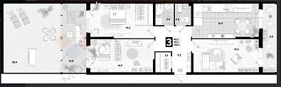3 комнатная квартира с террасой и 2 лоджиями! площадь с террасой 124,6 кв.м. предчистовая отделка! вид на две стороны! в шаговой доступности 9 детских садов, храм, фонтан в центре комплекса, футбольные и баскетбольные поля, на первых этажах располагаются кафе, рестораны, салоны красоты, магазины, разнообразные игровые и спортивные детские площадки, аква площадки, наличие собственной поликлиники, широкие дороги, хочешь квартиру с видом на мечту? звони прямо сейчас , и приятное дополнение , подземное парковочное место (13 600 000 квартира+900 000 парко место =14 4500 000) Номер объекта: #5/1616910/3069