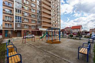 В шаговой доступности вся необходимая инфраструктура: детские сады и школа сразу за воротами, частный детский сад во дворе дома, парк Краснодар, стадион Краснодар, Гипермаркеты, Фитнес клуб с бассейном, салоны красоты и рестораны, остановка трамвая.