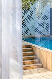 Бaссейн, зоны отдыха на территории. Рядом аквапарк, зоопарк, кафе и рестораны, СПА, а благодаря партнерству с известным санаторием «Октябрьский» (который расположен по соседству) отдыхающие имеют круглогодичный льготный доступ ко всем многочисленным услугам санатория!
