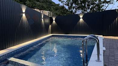 На закрытой территории отеля - ландшафтный дизайн, бассейн с подогревом, кинозал, лаундж-зона, кухня.