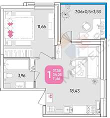 Продаётся уютная и светлая 1-комнатная квартира на 12 этаже 17-этажного дома. Общая площадь квартиры составляет 33.40 кв.м.