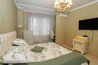 Кухня-столовая, гостиная, четыре изолированные спальные комнаты, три совмещенных с/узла: два с душевой кабиной, третий- с ванной-джакузи, прачечная со стиральной машинкой. Окна выходят на обе стороны: на улицу и во двор, что обеспечивает отличное естественное освещение в течение всего дня. Застекленный балкон. В каждой комнате установлена сплит-система; в мокрых зонах, в коридоре, кухне-столовой, на балконе- теплый пол; в кухне и душевой - бойлер на случай отключения горячей воды; в кухне установлен фильтр для очистки питьевой воды.