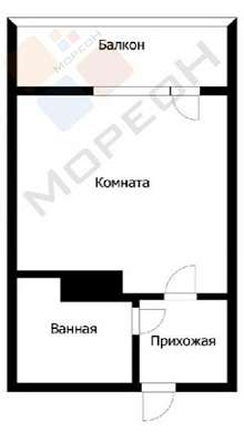 Площадь квартиры составляет 20.60 кв.м. Квартира с балконом.
