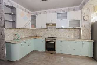 - Встроенная кухня с частично оставленной бытовой техникой.