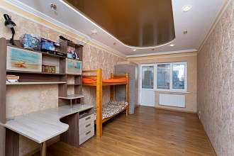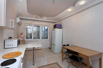 Большая кухня - гостинная 19,3 кв.м. Две полноценные комнаты (14,8 и 11,6 кв.м.). Застекленная лоджия 8 кв.м. с теплыми полами. Стильные натяжные потолки. Новые счетчики. Мебель.