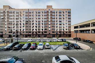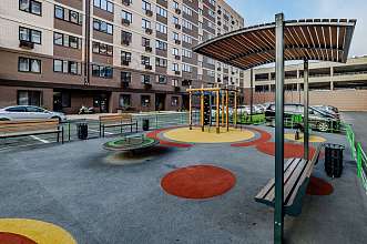 ✅ Большой зеленый двор с детскими площадками, закрытыми волейбольными и баскетбольными площадками и тренажерными зонами для взрослых и детей.