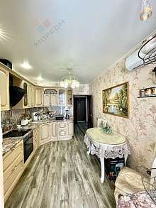 Кроме того, в квартире остаётся вся необходимая мебель: кухонный гарнитур, обеденный стол, два дивана, дорогая техника, шкафы, серванты, большая гардеробная с зеркалами, два кондиционера, дополнительно установлен водонагреватель, итальянские обои, дорогие межкомнатные двери.