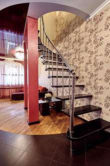 На первом этаже холл 25 кв.м., кухонная зона 32 кв.м. с выходом на лоджию 8 кв.м. и двумя световыми зонами, уборная, душевая кабина с эффектом сауны. Второй этаж холл 7 кв.м., две спальни 12 кв.м., кабинет 10 кв.м., гардеробная 4 кв.м, уборная, ванная комната 6 кв.м.