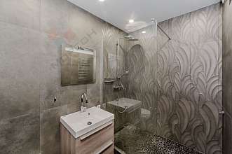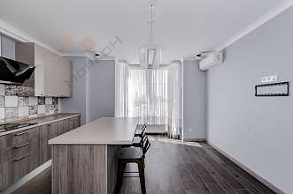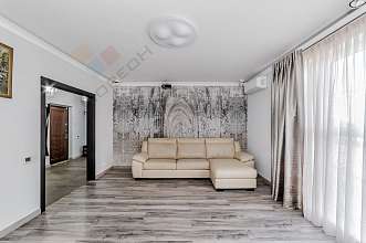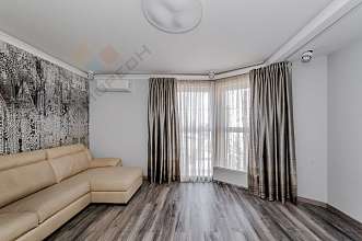 В квартире сделал авторский ремонт с использованием качественных материалов, вся мебель и материалы из Италии, теплые полы по всей квартире, поддержка умного дома, на кухне установлена техника Bosch. Панорамные окна в две стороны дома.