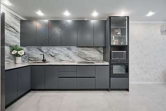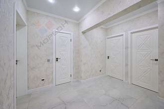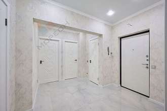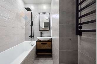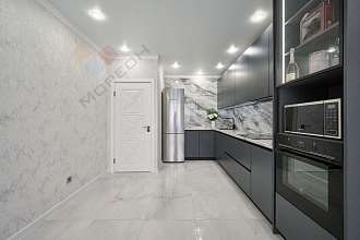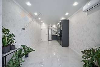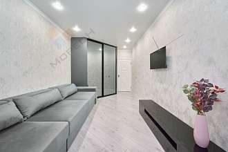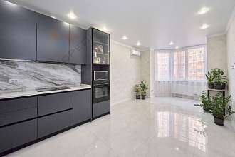 В квартире выполнен современный евроремонт в приятных светло-серых тонах.