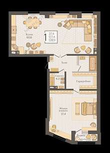 Общая площадь квартиры 129кв.м. ,витражное остекление,потолки 3,5м высотой,качественная предчистовая отделка.