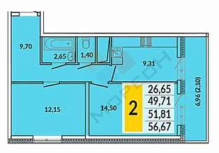 В продаже именно эта 2-х комнатная квартира в ЖК 7 Вершин. Располагается на первом этаже. Площадь по выписке 52,1 м.кв. + 7 м.кв. лоджия.