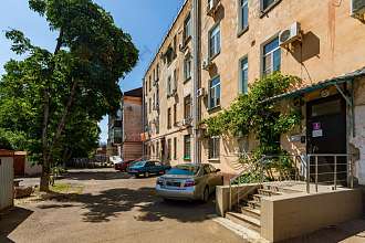 Дом сталинской архитектуры с высокими потолками, прочными звуконепроницаемыми стенами. Всего 16 квартир на весь дом, 8 квартир в подъезде. Свой закрытый двор, ворота открываются с пульта, места для парковки есть всегда как для хозяев, так и их гостей.