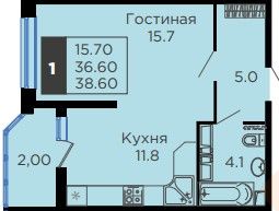 Площадь с учетом лоджии 38.6 м.кв.