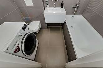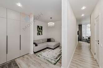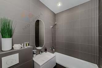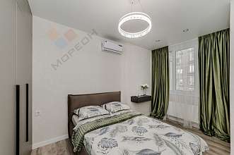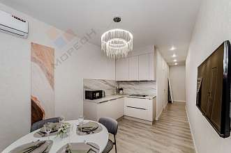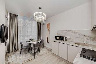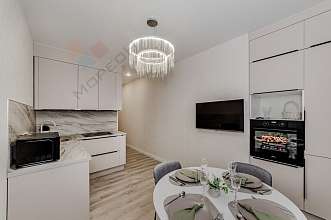 Дизайнерский ремонт выполнен из самых качественных материалов. Квартира полностью укомплектована мебелью и бытовой техникой. Все абсолютно новое. Отличная планировка - увеличена кухня, отдельная спальня и гостиная с зоной отдыха.
