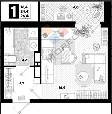 В продаже 1-комнатная. Квартира в ЖК «Самолет-2», район Западного проспекта.