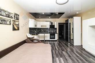 Продается уютная просторная студия на 18 этаже 18-этажного дома общей площадью по выписке 29.70 кв.м. По факту с учетом лоджии площадь составляет 35,7 кв.м. Этот модный и презентабельный вариант идеально подойдет как для молодых людей, так и для студентов.
