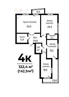 Общая площадь 142,9 кв.м . указана с учетом лоджии и балкона.