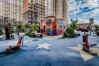 Во дворе жилого комплекса оборудованные интерактивные детские и спортивные площадки, боксерский ринг, зоны отдыха.