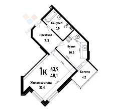 Площадь 43,9 кв.м указана по выписке из ЕГРН, без учета балкона