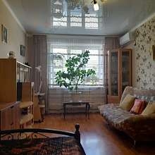 Квартира имеет очень удобную планировку. Большая просторная комната, уютная кухня с выходом на балкон, есть отдельная гардеробная. Балкон остеклен, на полу лежит ламинат, установлена сплит система.