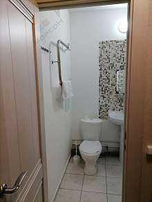В санузле кафель на полу.