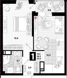 Квартира 34,2 кв.м по ЕГРН