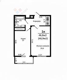 Общая площадь указана с учетом балкона. По выписке из ЕГРН 46,8 кв.м.