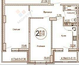 Общая площадь: 62 кв.м.