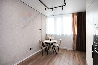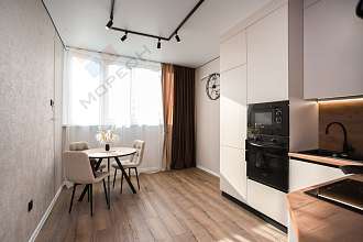 Фактическая площадь 39 квадратов. Свежайший качественный, стильный ремонт. Установлен кухонный гарнитур со всей техникой. Для вас уже есть встроенный холодильник, посудомойка, духовка, микроволновка, варочная поверхность, вытяжка. Обеденный стол и стулья.
