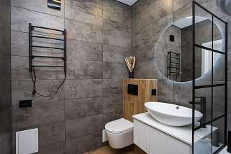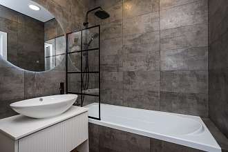 В ванной инсталляция, ванная и тропическая лейка.