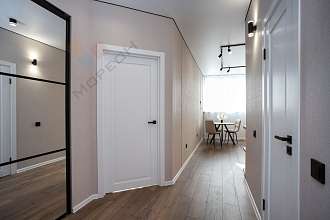 Грамотное зонирование обеспечивает пространство и воздух в квартире. Красиво, просторно и светло.