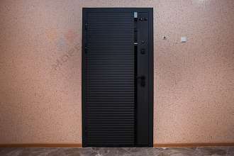 Установили новую входную дверь с отделкой шпоном внутри.