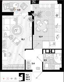 В продаже 1-комнатная квартира в ЖК «Самолет-4», район Западного проспекта.