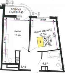Общая площадь с учетом лоджии 40,2 м2.