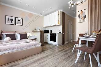 Вашему вниманию представлена прекрасная квартира-студия с дизайнерским ремонтом и очень эргономичным планировочным решением. Из окна открывается хороший вид на западную часть города. Предусмотрено большое количество освещения в разных зонах, сделаны теплые полы на лоджии и в санузле, а так же функциональные ниши хранения в прихожей и на лоджии.