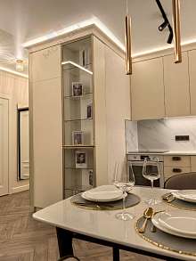 ✅ В квартире выполнен качественный ремонт из дорогих экологичных материалов: куxонная cтолeшницa и oбеденный cтoл из кaмня; немецкий ламинат А+ класса; дорогие межкомнатные двери с петлями скрытого монтажа; входная дверь премиум класса; итальянские обои; вся сантехника премиум класса (латунь с гальваническим покрытием)