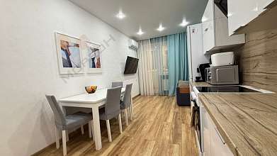 В квартире выполнен евроремонт. Полностью мебелирована и оборудована хорошей бытовой техникой.