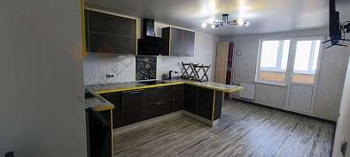 Кухня оборудована техникой Bosch и мебелью фабрики «Мария». Из окон открывается красивый вид на город с двух лоджий, выходящих на улицы Российскую и Солнечную.
